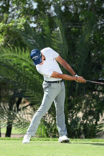 4) An dieser Stelle hat Matteo seinen Down-Swing bereits eingeleitet, das Bild wurde kurz nach dem höchsten Punkt im Schwung geschossen. Das ist deutlich am Handgelenkwinkel zu erkennen, denn es wird bereits Lag aufgebaut. So entsteht Power!